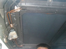 ![]() | まず、ルーフライニングを外します。 ルーフライニングの布地の垂れは、E36の致命傷ですが、サンルーフが付いている場合は、そんなに目立たないです。 |