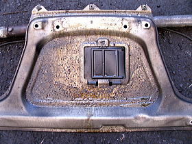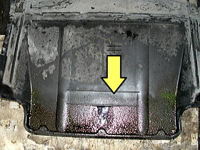 ![]() | アンダーカバーを外すと、オイルがこびり付いていました。 E36の場合は、カバーが無いのですぐわかるのですが、E46以降は、全部にカバーが付いているので、外してみないとわからないんですよね・・・・ |
