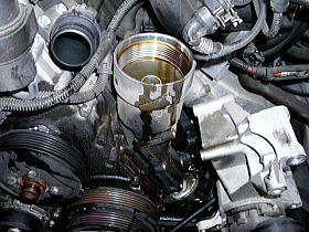 ![]() | 原因は、オイルフィルターケースからのオイル漏れです。 |