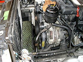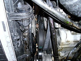 ![]() | この隙間に、ラジエターを入れます。 ファンベルト・A/Cベルトも、亀裂が入っていたため交換 |