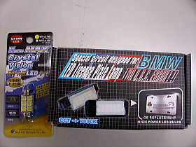 ![]() | レーシングダッシュ(正規品)のライセンスプレートと、キャンセラー内蔵のLEDを使用しました。 E36の場合は、キャンセラー内蔵じゃなくても大丈夫なのですが、キャンセラー内蔵のほうが、断然明るいです。 |