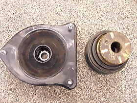 ![]() | 運転中、ガタガタするとのことで、調べてみると、左フロントサポートベアリングと補助ダンパーに亀裂が入っていました。 |