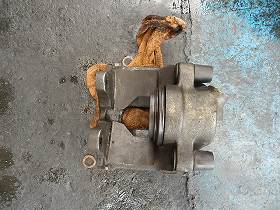 右フロントブレーキキャリパーのピストンからゴムブッシュがむき出しになっていたため、オーバーホールしました。