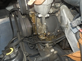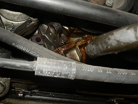 至る所にエンジンオイルが付着しています。