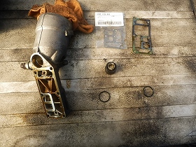 オイルフィルターケースからの漏れのため、オイルフィルターケースガスケット・ソケットを交換し、エンジンオイル・オイルエレメントを交換しました。
