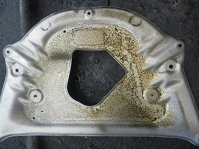 アンダーカバーも、オイル漏れでベトベトになっています。