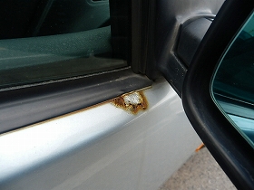 右フロントドアのドアミラー下部に錆が出ているため、板金塗装しました。