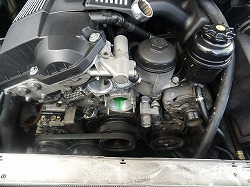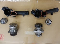 | E39 528iツーリング 平成9年式 オーバーヒートのためレッカーで入庫 ウォーターポンプ・サーモスタット・モスタットケース・LLCを交換しました。 | |