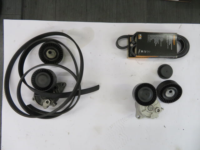 | E46 323i 平成12年式 異音のため入庫 ファンベルトテンショナー(純正9,220円→OEM7,000円)・テンションローラー(純正9,300円→OEM6,000円)・ファンベルト(純正7,360円→OEM4,000円)・A/Cベルト(純正5,960円→OEM2,600円)・保護キャップを交換しました。 | |