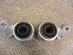 ![]() | E46 320i 平成13年式 走行中、ハンドルを取られたり、乗り心地が悪くなる場合、フロントロアアームブッシュのゴムの劣化が原因です。 新品(MEYELE製)に交換しました。 |
