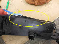 | E46 318Ci 平成13年式 オーバーヒートのため、レッカーで入庫 調べてみると、ラジエターアッパーホースが破れていました。 新品に交換し、完了です。 | |