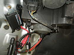 | MINI R50 Cooper 平成14年式 社外HIDを取り付けました。ヘッドライトがボンネットについているため、バラスト等を取り付けるのに苦労しましたが、どうにか取り付けできました。 これで、夜も安心ですね♪ 相当明るくなりますよ。 | |